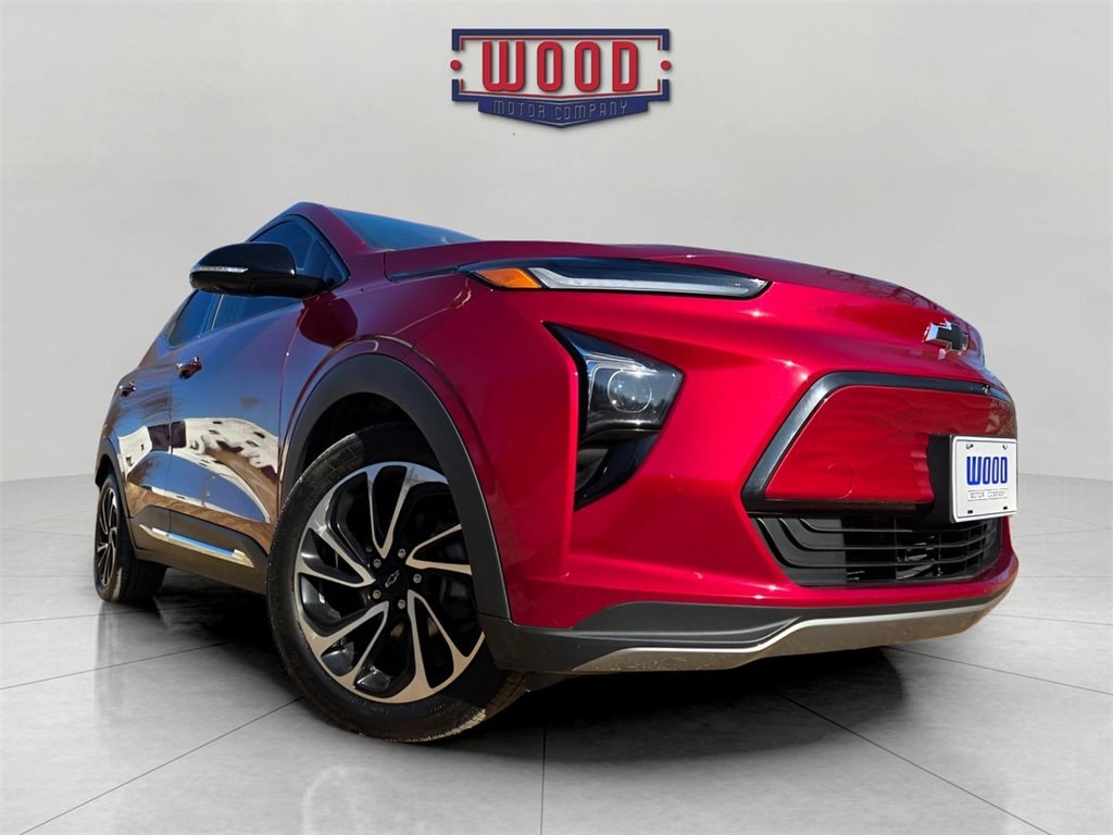 CARFAX One-Owner. Clean CARFAX. Bolt EUV Premier, 4D Sport Utility, Electric Motor, 1-Speed Automatic, FWD, Radiant Red Tintcoat, Jet Black/Nightshift Blue w/Perforated Leather-Appointed Seat Trim, 8-Way Power Driver Seat Adjuster, Apple CarPlay/Android Auto, Auto High-beam Headlights, Automatic temperature control, Bose Premium 7-Speaker Audio System, Electronic Stability Control, Exterior Parking Camera Rear, Front Bucket Seats, Fully automatic headlights, Heated door mirrors, Heated Driver & Front Passenger Seats, Heated front seats, Heated rear seats, Heated steering wheel, Illuminated entry, Navigation System, Outside temperature display, Perforated Leather-Appointed Seat Trim, Performance Ride & Handling Suspension, Power driver seat, Power Dual Panel Panoramic Sunroof w/Slide, Power windows, Preferred Equipment Group 2LZ, Radio: Chevrolet Infotainment 3 Plus System w/Navi, Rain sensing wipers, Remote keyless entry, Security system, Split folding rear seat, Steering wheel mounted audio controls, Sun & Sound Package, Telescoping steering wheel, Tilt steering wheel, Traction control, Turn signal indicator mirrors, Variably intermittent wipers, Ventilated Driver Seat, Ventilated Front Passenger Seat, Ventilated front seats, Wheels: 17" Machined-Face Aluminum. Radiant Red Tintcoat 2023 Chevrolet Bolt EUV Premier FWD 1-Speed Automatic Electric Motor