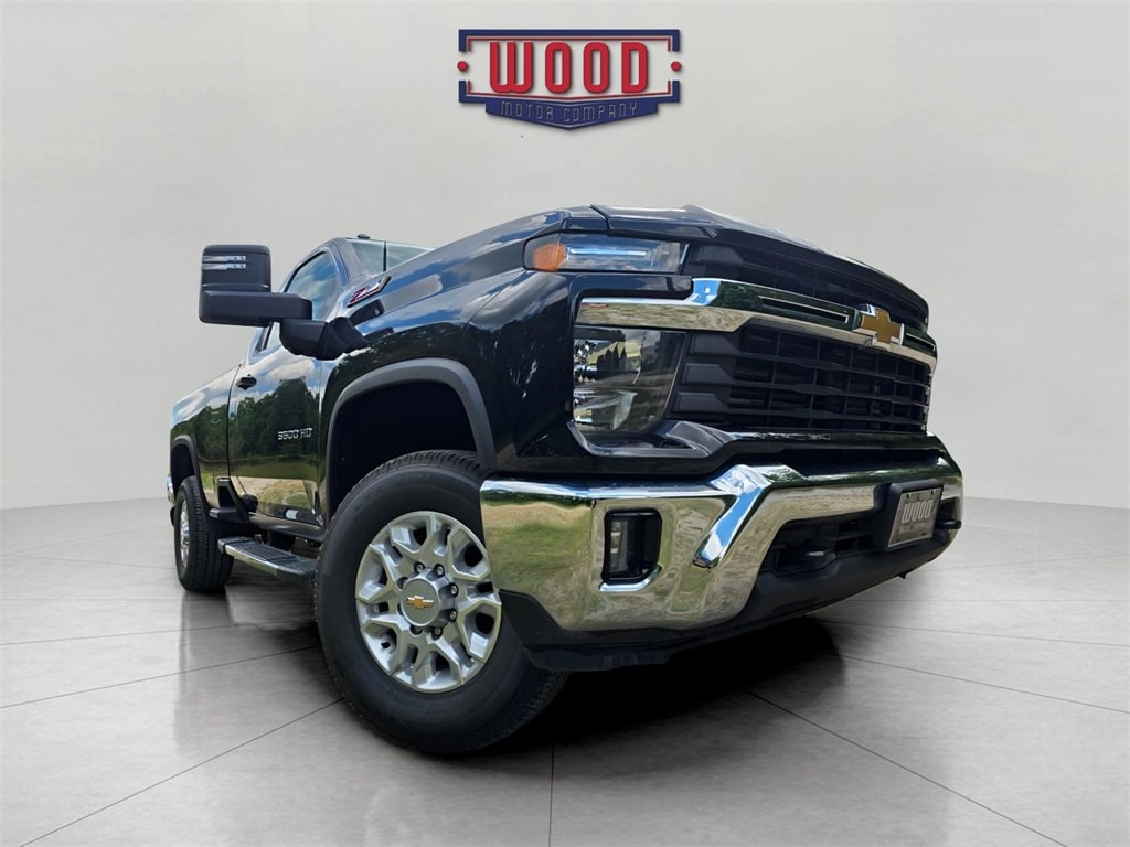 Clean CARFAX. Silverado 3500HD LT, 2D Standard Cab, Duramax 6.6L V8 Turbodiesel, 10-Speed Automatic, 4WD, Black, Black Cloth, 10-Way Power Driver Seat Adjuster w/Lumbar, 120-Volt Bed Mounted Power Outlet, 120-Volt Interior Power Outlet, 170 Amp Alternator, 2-Speed Electronic Shift Transfer Case, 4-Way Manual Driver Seat Adjuster, Apple CarPlay/Android Auto, Black Mirror Caps, Bluetooth® For Phone, Chevrolet Connected Access Capable, Chevytec Spray-On Black Bedliner, Color-Keyed Carpeting Floor Covering, Compass Located In Instrument Cluster, Convenience Package, Deep-Tinted Glass, Dual Rear USB Ports (Charge Only), Dual-Zone Automatic Climate Control, Electric Rear-Window Defogger, EZ Lift Power Lock & Release Tailgate, Front LED Fog Lamps, Front Rubberized Vinyl Floor Mats, Gooseneck/5th Wheel Prep Package, Halogen Reflector Headlamps, HD Rear Vision Camera, Heat Package, Heated Driver & Front Outboard Passenger Seats, Heated Steering Wheel, Heavy Duty Front Spring/Camper Package, Keyless Open & Start, LED Cargo Area Lighting, Manual Tilt-Wheel Steering Column, Manual Tilt-Wheel/Telescoping Steering Column, OnStar & Chevrolet Connected Services Capable, Outside Power-Adjustable Mirrors, Power Door Locks, Power Front Windows w/Driver Express Up/Down, Power Front Windows w/Passenger Express Down, Preferred Equipment Group 1LT, Push Button Start, Remote Start Package, Remote Vehicle Starter System, SiriusXM w/360L, Standard Tailgate, Steering Wheel Audio Controls, Steering Wheel Mounted Electronic Cruise Control, Suspension Package, Unauthorized Entry Theft-Deterrent System, Wi-Fi Hotspot Capable, Wrapped Steering Wheel. Black 2024 Chevrolet Silverado 3500HD LT 4WD 10-Speed Automatic Duramax 6.6L V8 Turbodiesel