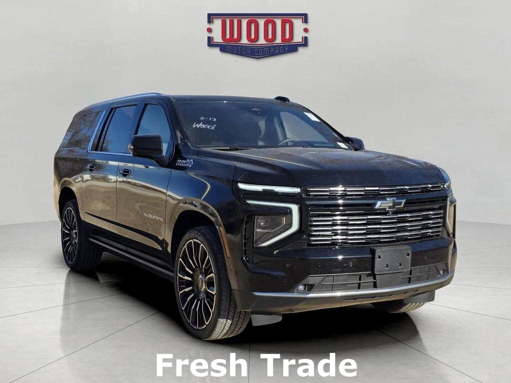 CARFAX One-Owner. Clean CARFAX. Suburban High Country, 4D Sport Utility, EcoTec3 6.2L V8, 10-Speed Automatic with Overdrive, 4WD, Black, Jet Black/Mocha w/Perforated Leather Seating Surfaces, 15" Diagonal Multi-Color Head-Up Display, 2-Speed Active Electronic AutoTrac Transfer Case, 3rd Row 60/40 Power-Folding Split-Bench, 3rd row seats: split-bench, 4-Way Power Driver Lumbar Seat Adjuster, 4-Way Power Front Passenger Lumbar Seat Adjuster, 8-Way Power Driver Seat Adjuster, 8-Way Power Front Passenger Seat Adjuster, Advanced Trailering Package, Air Ride Adaptive Suspension, Apple CarPlay/Android Auto, Auto High-beam Headlights, Automatic temperature control, Blind Zone Steering Assist with Trailering, Bose 10-Speaker Surround with CenterPoint, Bright Front and Rear Door Sill Plates, Chrome Door Handles with Body-Color Strip, Dual Exhaust System, Dual-Pane Power Panoramic Sunroof, Exterior Parking Camera Rear, Extra Capacity Cooling System, Front Bucket Seats, Front dual zone A/C, Front LED Fog Lamps, Garage door transmitter, Heads-Up Display, Heated 2nd Row Outboard Seats, Heated Driver and Front Passenger Seats, Heated front seats, Heated Power-Adjustable Outside Mirrors, Heated rear seats, Heated Steering Wheel, Heated steering wheel, High Country Deluxe, Hill Descent Control, Hitch View with Pan/Zoom Image Adjustment, Illuminated entry, Inside Rearview Auo-Dimming Rear Camera Mirror, Integrated Trailer Brake Controller, LED Headlamps with LED Daytime Running Lamps, LED Tail Lamps, License Plate Front Mounting Package, Magnetic Ride Control Suspension, Max Trailering Package, Memory Settings, Navigation system: Google built-in compatibility (select service plan required, terms and limitations apply), Outside temperature display, Perforated Heated and Ventilated Seats, Perforated Leather Seating Surfaces, Power driver seat, Power Liftgate, Power passenger seat, Power Release 2nd Row Bucket Seats, Power Tilt and Telescopic Steering Column, Power windows, Power-Retractable Assist Steps, Power-Sliding Center Floor Console, Preferred Equipment Group 3LZ, Radio: 17.7" Diagonal Advanced Color LCD Display, Rain sensing wipers, Rear air conditioning, Rear Power Liftgate, Remote keyless entry, SiriusXM with 360L Trial Subscription, Smart Trailer Integration Indicator, Speed control, Steering wheel memory, Steering wheel mounted audio controls, Telescoping steering wheel, Tilt steering wheel, Traction control, Universal Home Remote, Variably intermittent wipers, Ventilated front seats, Wheels: 24" x 9.5" Bright Machined, Wireless Apple CarPlay/Wireless Android Auto, Wireless Phone Charging. Black 2025 Chevrolet Suburban High Country 4WD 10-Speed Automatic with Overdrive EcoTec3 6.2L V8
