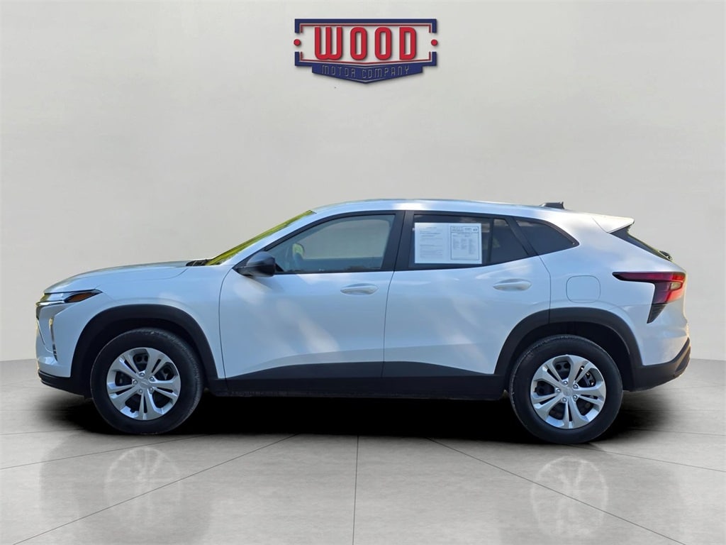 CARFAX One-Owner. Clean CARFAX. Trax LS, 4D Sport Utility, FWD, Summit White, Jet Black/Gray With Blue Accents Cloth, Air Conditioning, Cloth Seat Trim, Electronic Stability Control, Front Bucket Seats, Fully automatic headlights, Power windows, Preferred Equipment Group 1LS, Premium audio system: Chevrolet Infotainment 3, Speed control, Steering wheel mounted audio controls, Telescoping steering wheel, Traction control. Summit White 2025 Chevrolet Trax LS FWD 6-Speed Automatic 1.2L Ecotec Turbo DOHC DI w/VVT