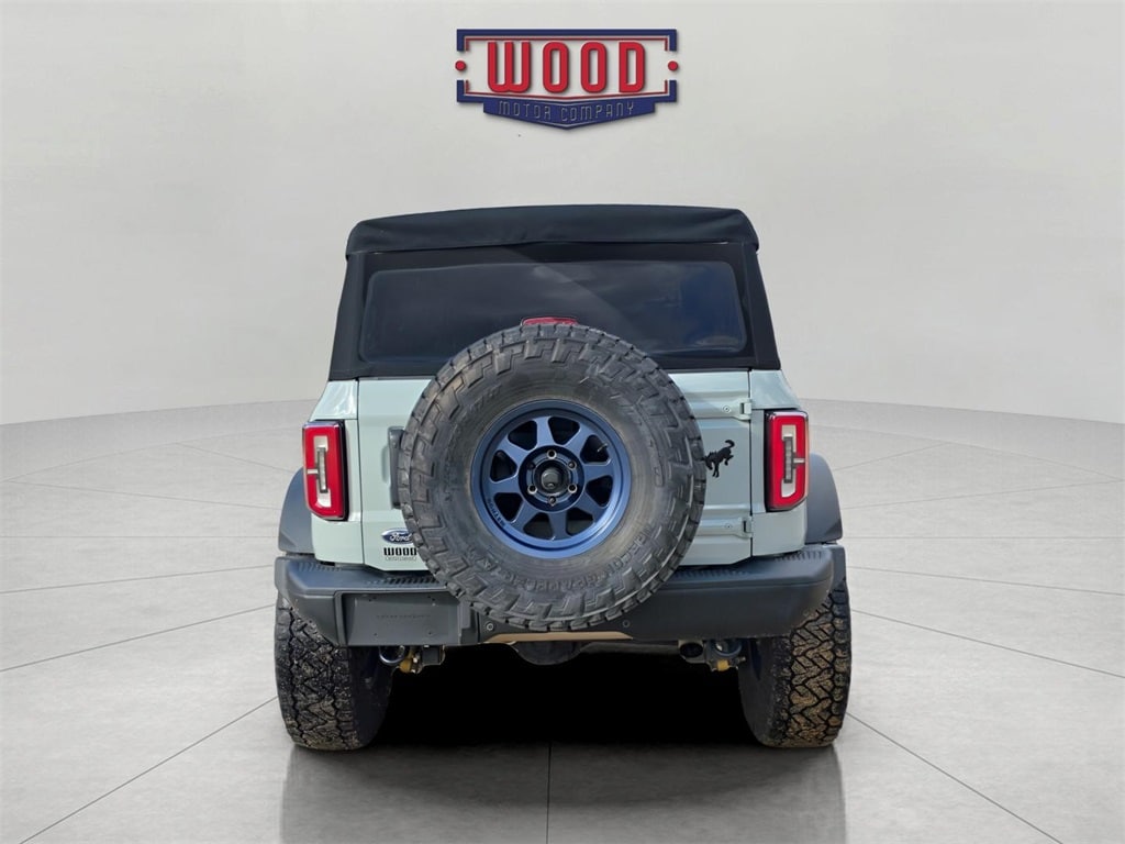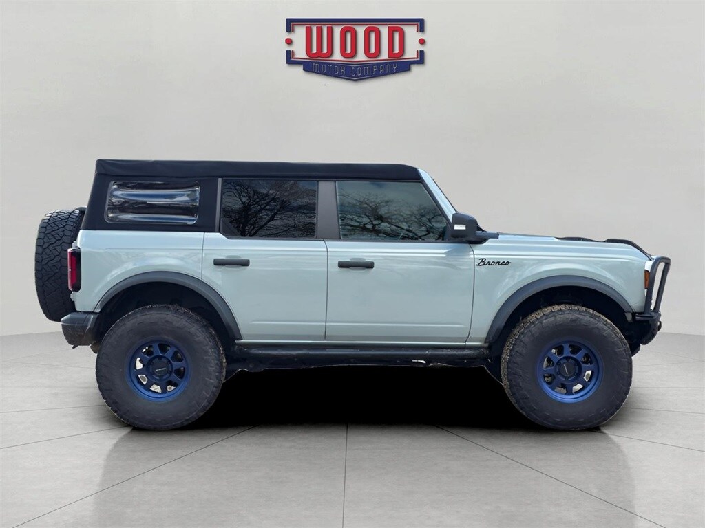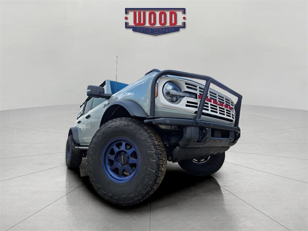 Bronco Badlands, 4D Sport Utility, 2.7L EcoBoost V6, 10-Speed Automatic, 4WD, Cactus Gray, Black Onyx w/Heated Leather-Trimmed/Vinyl Bucket Seats, 12" LCD Capacitive Touchscreen w/Swipe Capability, 2-Door Intelligent Access w/Lock/Unlock, 360-Degree Camera, 4.7 Final Drive Ratio, Additional Sound Deadening, Ambient Footwell Lighting, Auto-Dimming Interior Rear-View Mirror, Connected Navigation, Dr & Pass Illuminated Sliding Visor Vanity Mirrors, Dual-Zone Electronic Automatic Temperature Control, Enhanced Voice Recognition, Equipment Group 333A High Package, Exterior Parking Camera Rear, Forward Sensing System, Front Row Heated Seats, Fully automatic headlights, High Clearance Fender Flares, High Clearance Suspension, Information on Demand Panel, Lane-Keeping System, Position-Sensitive Bilstein Shock Absorbers, Power Outlet - Back Side of Center Floor Console, Power windows, Rear-View Camera, Remote keyless entry, Reverse Sensing System, Sasquatch Package, Security system, Sideview Mirrors, Speed control, Steering wheel mounted audio controls, Wheels: 17" Black High Gloss-Painted Aluminum. Cactus Gray 2021 Ford Bronco Badlands 4WD 10-Speed Automatic 2.7L EcoBoost V6