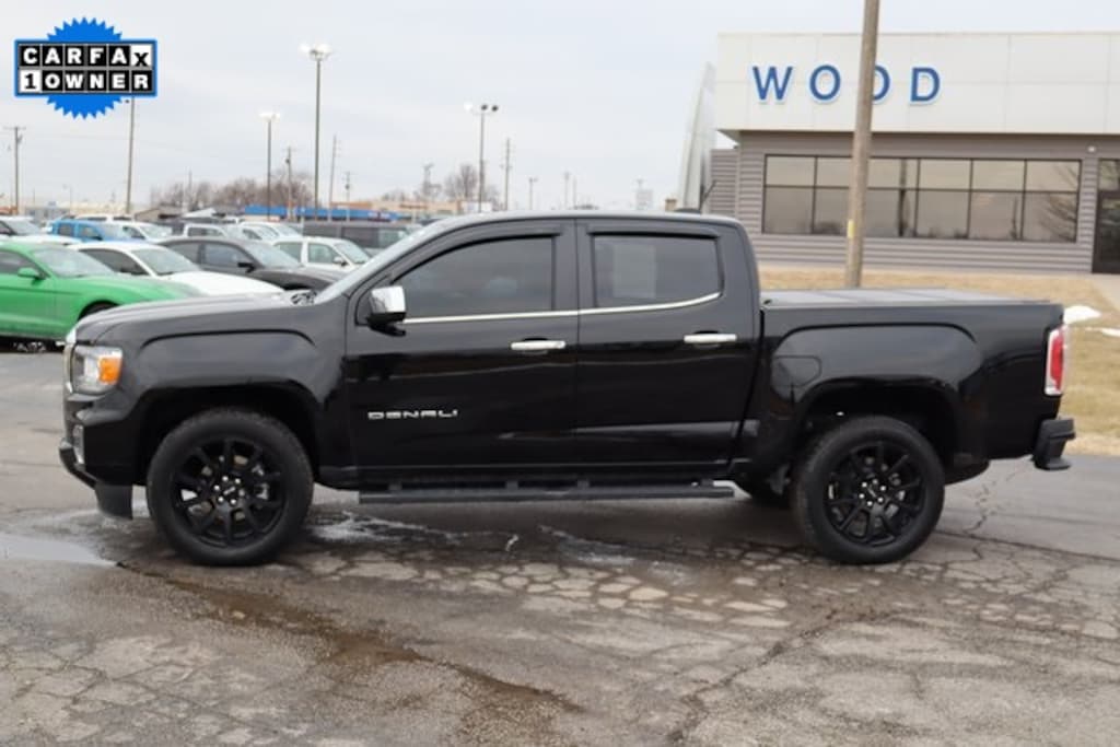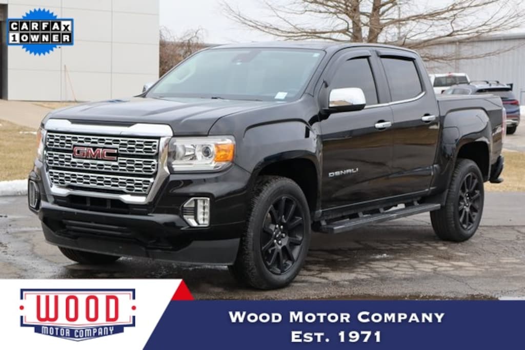 Onyx Black 2022 GMC Canyon Denali 4WD 8-Speed Automatic V6 4WD, 1st & 2nd Rows All-Weather Floor Liners (LPO), 2 USB Data Ports, 3.42 Rear Axle Ratio, 5" Rectangular Black Assist Steps (LPO), 5" Rectangular Chrome Assist Steps, Air Conditioning, Apple CarPlay/Android Auto, Auto-dimming Rear-View mirror, Automatic temperature control, Black Spray-On Bedliner w/GMC Logo, Bose Premium 7-Speaker Audio System Feature, Compass, Delay-off headlights, Denali Black Edition Package, Driver 6-Way Power Seat Adjuster, Driver Alert Package, Driver door bin, Driver vanity mirror, Electronic Stability Control, Exterior Parking Camera Rear, Forward Collision Alert, Front fog lights, Front reading lights, Fully automatic headlights, Genuine wood console insert, Genuine wood door panel insert, GMC Black Chrome Exhaust Tip (LPO), HD Radio, Heated door mirrors, Heated Steering Wheel, Heated steering wheel, Hitch Guidance, Illuminated entry, Integrated Trailer Brake Controller, Lane Departure Warning System, Low tire pressure warning, Navigation System, Not Equipped w/Rear Park Assist, Outside temperature display, Overhead console, Panic alarm, Passenger door bin, Passenger vanity mirror, Perforated Leather-Appointed Seat Trim, Polished Exhaust Tip, Power door mirrors, Power Driver Lumbar Control Seat Adjuster, Power driver seat, Power Passenger Lumbar Control Seat Adjuster, Power passenger seat, Power steering, Power windows, Preferred Equipment Group 4SD, Radio: AM/FM w/8" Diagonal Multi-Touch Display Nav, Rear reading lights, Rear seat center armrest, Rear step bumper, Rear window defroster, Remote keyless entry, Security system, SiriusXM Radio, Speed control, Speed-sensing steering, Steering wheel mounted audio controls, Tachometer, Telescoping steering wheel, Tilt steering wheel, Tow/Haul Mode, Traction control, Trailering Package, Trip computer, Ultrasonic Rear Parking Assist, Variably intermittent wipers, Wheels: 20" Aluminum Low Gloss Black (LPO), Wheels: 20" x 8.5" Diamond Cut Machined Aluminum, Wireless Charging for Compatible Cell Phones.