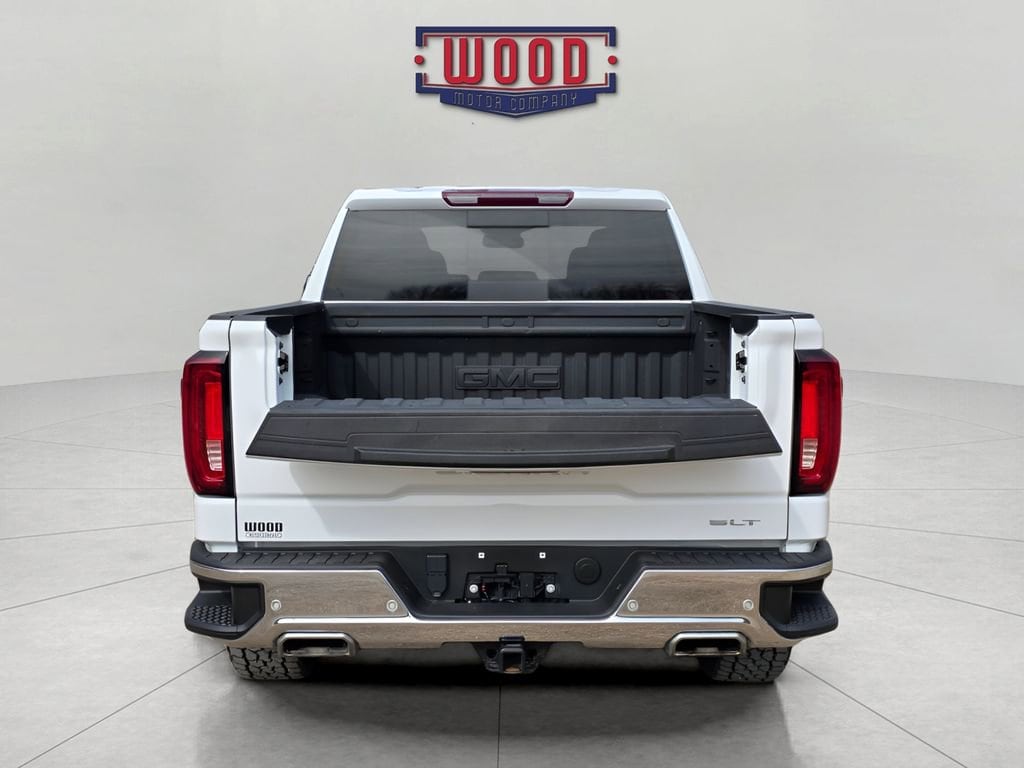 CARFAX One-Owner. Clean CARFAX. Sierra 1500 SLT, 4D Crew Cab, EcoTec3 5.3L V8, 10-Speed Automatic, 4WD, Summit White, Black Leather, 10-Way Power Driver Seat Adjuster w/Lumbar, 10-Way Power Passenger Seat Adjuster w/Lumbar, 120-Volt Bed Mounted Power Outlet, 120-Volt Interior Power Outlet, 170 Amp Alternator, 2 Charge/Data USB Ports, 2 Charge/Data USB Ports Inside Center Console, 2 Type-C Charge-Only Rear USB Ports, 6-Speaker Audio System Feature, Adaptive Cruise Control, All-Weather Floor Liner (LPO), Apple CarPlay/Android Auto, Auto-Locking Rear Differential, Automatic temperature control, Auxiliary External Transmission Oil Cooler, Chrome Header & Chrome Grille Insert Bars, Chrome Wheel To Wheel Assist Steps, Color-Keyed Carpeting Floor Covering, Deep-Tinted Glass, Driver Memory, Dual Exhaust System, Electric Rear-Window Defogger, Electronic Precision Shift, Electronic Stability Control, Floor-Mounted Center Console, Front Bucket Seats, Front dual zone A/C, Front Frame-Mounted Black Recovery Hooks, Front Rain-Sensing Wipers, GMC Connected Access Capable, HD Rear Vision Camera, HD Surround Vision, Heated 2nd Row Outboard Seats, Heated Driver & Front Outboard Passenger Seating, Heated front seats, Heated steering wheel, High Capacity Suspension Package, Hill Descent Control, Hitch Guidance, Hitch View, Illuminated entry, In-Vehicle Trailering System App, Integrated Trailer Brake Controller, Keyless Open & Start, LED Cargo Area Lighting, Manual Tilt-Wheel & Telescoping Steering Column, Memory seat, Navigation System, Off-Road Suspension, OnStar & GMC Connected Services Capable, Outside temperature display, Perf Leather-Appointed Front Outboard Seat Trim, Perimeter Lighting, Power Door Locks, Power driver seat, Power Front Passenger Windows w/Express Up/Down, Power Front Windows w/Driver Express Up/Down, Power Rake & Telescoping Steering Column, Power Rear Windows w/Express Down, Power Sliding Rear Window w/Rear Defogger, Preferred Equipment Group 4SA, Premium Bose 7-Speaker Sound System, ProGrade Trailering System, Push Button Start, Rear Cross Traffic Braking, Rear Pedestrian Detection, Rear Wheelhouse Liners, Remote keyless entry, Remote Vehicle Starter System, Safety Alert Seat, Sierra Safety Plus Package, SiriusXM w/360L, SLT Convenience Package, SLT Preferred Package, SLT Premium Plus Package, Split folding rear seat, Spray-On Pickup Bedliner w/GMC Logo, Standard Suspension Package, Steering Wheel Audio Controls, Steering wheel mounted audio controls, Theft Deterrent System (Unauthorized Entry), Trailer Camera Provisions, Trailer Side Blind Zone Alert, Trailering Package, Ultrasonic Front & Rear Park Assist, Universal Home Remote, Ventilated Driver & Front Passenger Seats, Wheels: 20 Polished Aluminum w/RFX, Wi-Fi Hotspot Capable, Wireless Charging, X31 Hard Badge, X31 Off-Road & Protection Package, X31 Off-Road Package. Summit White 2024 GMC Sierra 1500 SLT 4WD 10-Speed Automatic EcoTec3 5.3L V8