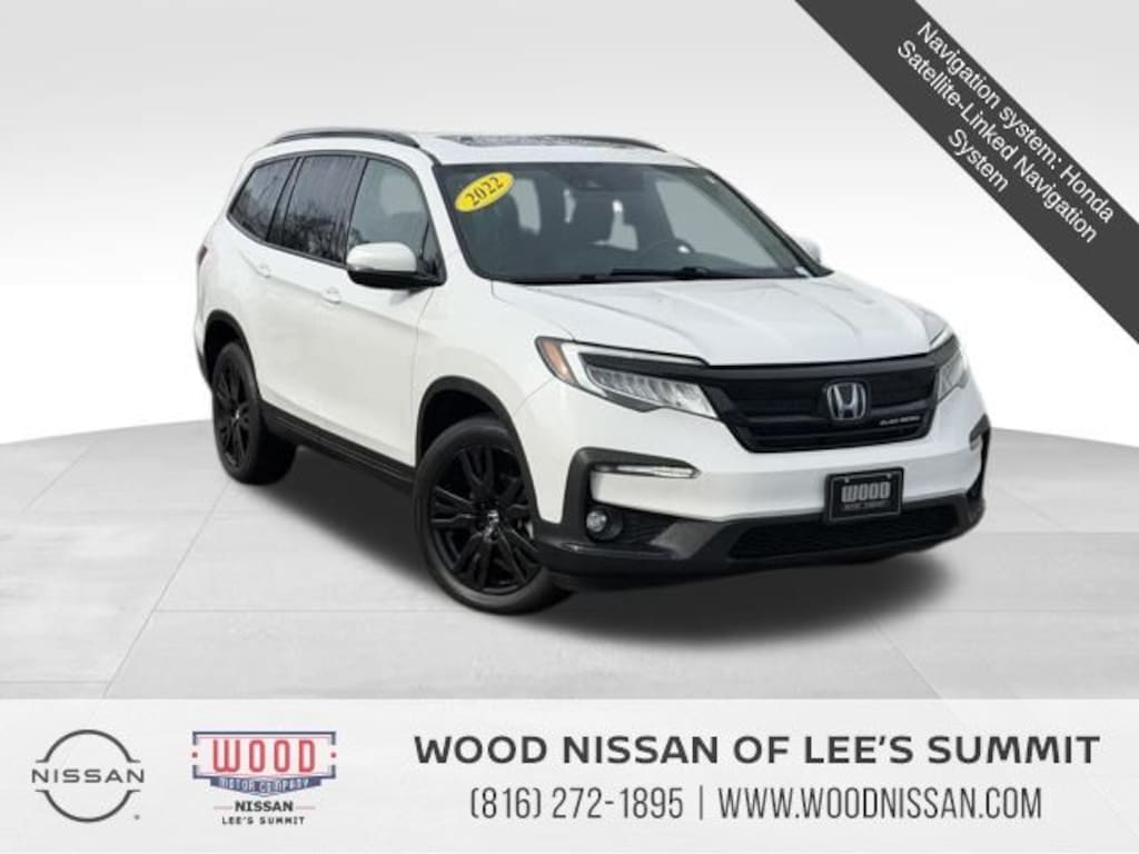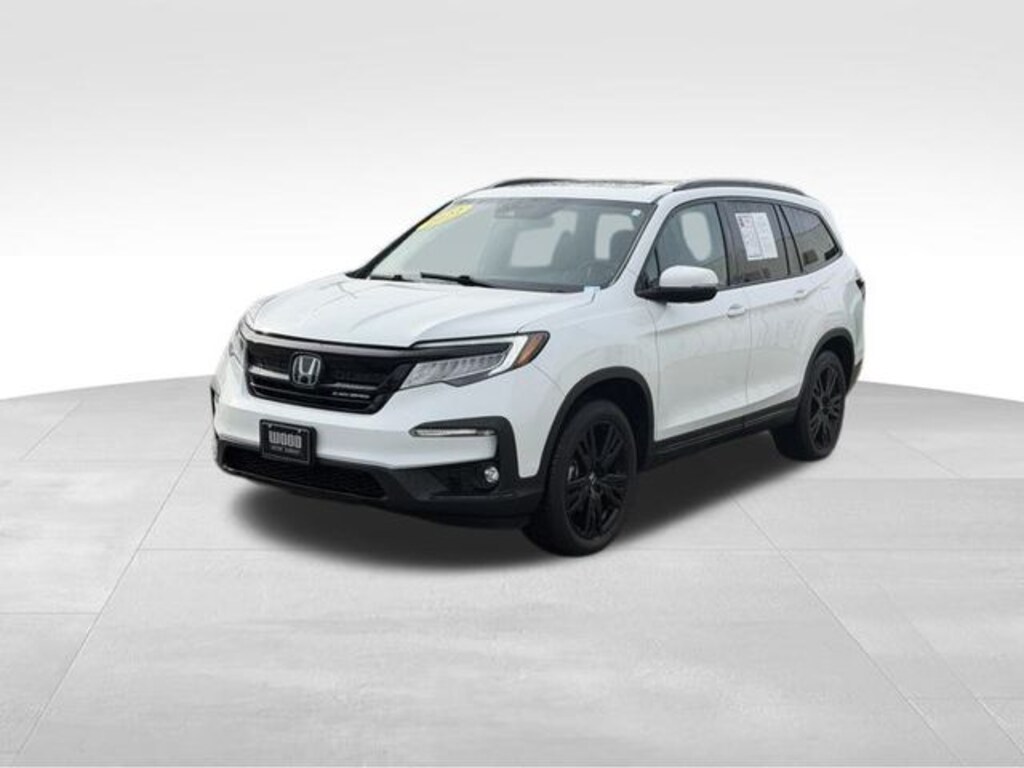 AWD, Apple CarPlay/Android Auto, Automatic temperature control, Blind Spot Information (BSI) System warning, Forward collision: Collision Mitigation Braking System (CMBS) + FCW mitigation, Front dual zone A/C, Heated & Ventilated Front Bucket Seats, Heated rear seats, Lane departure: Lane Keeping Assist System (LKAS) active, Navigation system: Honda Satellite-Linked Navigation System, Power Liftgate, Power moonroof, Radio: 590-Watt Premium Audio System, Rear air conditioning, Wheels: 20" Exclusive Gloss Black Alloy. Platinum White Pearl 2022 Honda Pilot Black Edition AWD 9-Speed Automatic 3.5L V6 24V SOHC i-VTEC