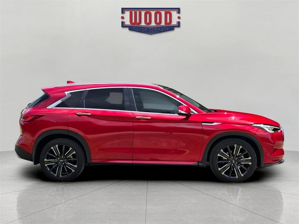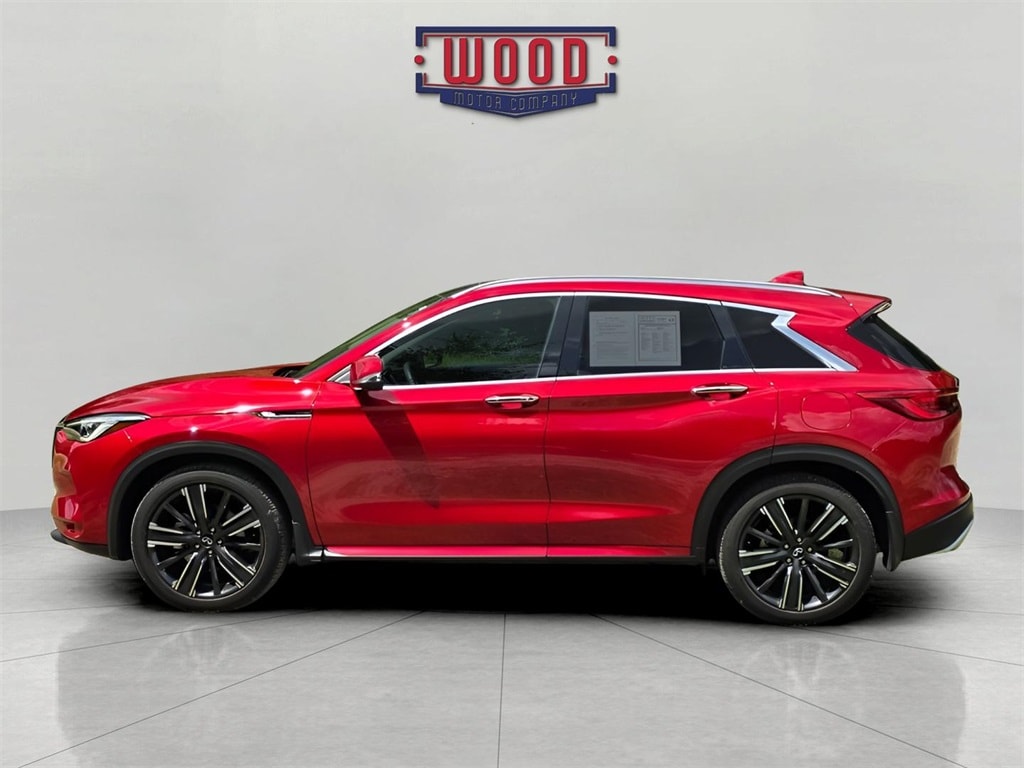 CARFAX One-Owner. QX50 Sensory, 4D Sport Utility, I4, AWD, Dynamic Sunstone Red, Pebble Gray w/Leather-Appointed Seat Trim, 16 Speakers, Automatic temperature control, Climate Controlled Front Bucket Seats, Electronic Stability Control, Front Bucket Seats, Front dual zone A/C, Front fog lights, Heads-Up Display, Heated front seats, Navigation system: INFINITI InTouch Navigation, Passenger door bin, Power driver seat, Power Liftgate, Power moonroof, Power windows, Radio: Bose Performance Series Audio System, Remote keyless entry, Security system, Semi-Aniline Leather-Appointed Seat Trim, Speed control, Steering wheel memory, Steering wheel mounted audio controls, Traction control, Ventilated front seats. Dynamic Sunstone Red 2023 INFINITI QX50 Sensory AWD CVT I4