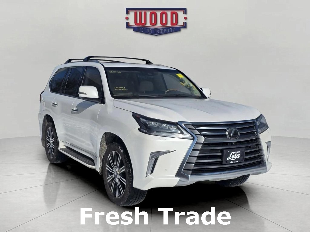 LX 570, 4D Sport Utility, 5.7L V8 DOHC Dual VVT-i 32V, 8-Speed Automatic with Sequential Shift, 4WD, Eminent White Pearl, Parchment w/Leather Seat Trim or Perforated Semi-Aniline Leather Seat Trim or Luxury Package or Open Pore Walnut & Leather Heated Steering Wheel, 3rd row seats: split-bench, Adaptive suspension, AM/FM radio: SiriusXM, Auto High-beam Headlights, Automatic temperature control, Climate Comfort Seats, DVD-Audio, Electronic Stability Control, Exterior Parking Camera Rear, Front & Rear LED Courtesy Lamps w/Logo, Front Bucket Seats, Front dual zone A/C, Fully automatic headlights, Headlight cleaning, Heads-Up Display, Heated Front Bucket Seats, Heated front seats, Leather Seat Trim, Lexus Enform App Suite, Lexus Enform Destinations Assist, Lexus Navigation System, Luxury Package, Memory seat, Open Pore Walnut & Leather Heated Steering Wheel, Perforated Semi-Aniline Leather Seat Trim, Power driver seat, Power moonroof, Power windows, Radio: Lexus Premium Audio AM/FM/HD Single DVD, Radio: Mark Levinson Audio System, Rear air conditioning, Rear dual zone A/C, Remote keyless entry, Security system, Speed control, Split folding rear seat, Steering wheel memory, Steering wheel mounted audio controls, Telescoping steering wheel, Tilt steering wheel, Traction control, Wheels: 21" x 8.5" Split 10-Spoke Aluminum. Eminent White Pearl 2019 Lexus LX 570 4WD 8-Speed Automatic with Sequential Shift 5.7L V8 DOHC Dual VVT-i 32V