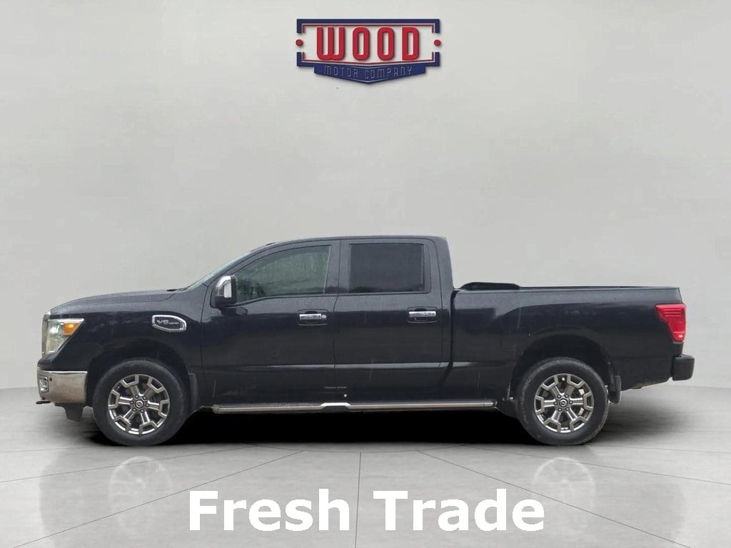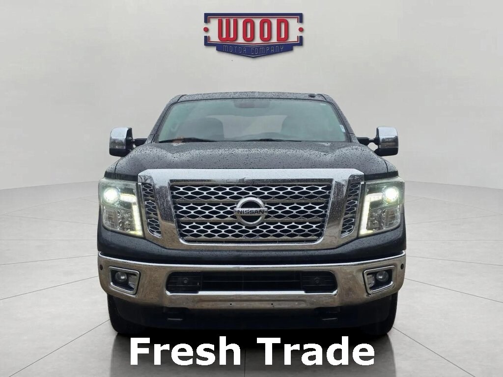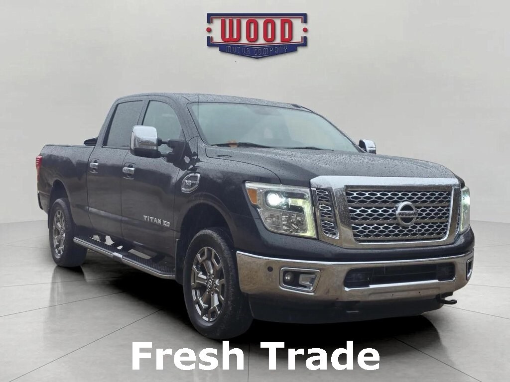 Titan XD SL, 4D Crew Cab, 5.6L V8, 7-Speed Automatic, 4WD, Magnetic Black, Black w/Leather Seat Trim, 20" Chrome Wheels, Automatic temperature control, Chrome Exhaust Finisher, Chrome Front Grille, Chrome Package, Electronic Stability Control, Front Bucket Seats, Front dual zone A/C, Front fog lights, Heated front seats, Kick Plates, Leather Seat Trim, Memory seat, Navigation System, Power driver seat, Power windows, Radio: NissanConnect w/SiriusXM/Navi & Mobile Apps, Rain sensing wipers, Remote keyless entry, Rockford Fosgate Premium 12 Speaker Audio System, Security system, Siri Eyes Free, Speed control, Steering wheel memory, Steering wheel mounted audio controls, Traction control, Variably intermittent wipers. Magnetic Black 2017 Nissan Titan XD SL 4WD 7-Speed Automatic 5.6L V8