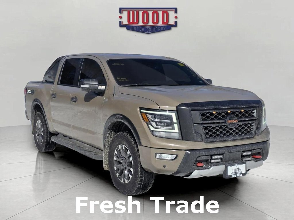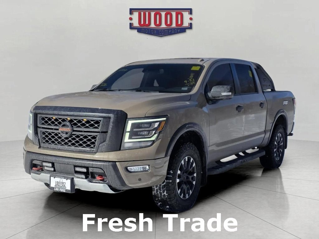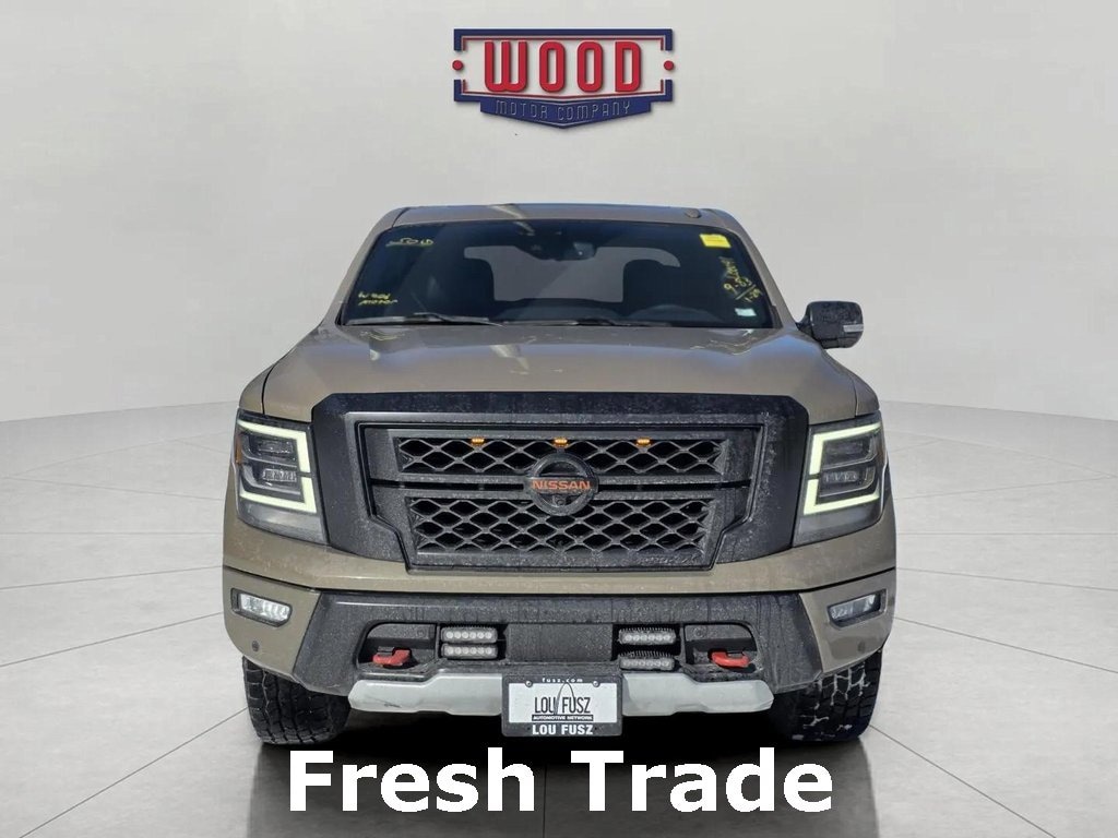 Clean CARFAX. Titan PRO-4X, 4D Crew Cab, 5.6L V8 DOHC 32V LEV3-ULEV70 400hp, 9-Speed Automatic, 4WD, Baja Storm, Black w/Leather-Appointed Seat Trim, 110V Outlet in Bed, 4-Way Power Assist Seat, AM/FM radio: SiriusXM, Auto High-beam Headlights, Automatic temperature control, Driver & Passenger Ventilated Front Seats, Dual Panel Panoramic Moonroof w/Tilt & Slide, Fender Premium Audio System w/12 Speakers, Front & Rear Parking Sensors, Front dual zone A/C, Fully automatic headlights, Heated Driver & Passenger Seat, Heated Power Tilt/Telescopic Steering Wheel, Heated Rear Seats, Intelligent Around View Monitor (I-AVM), Leather Seat Trim, LED Tailgate Area Illumination, LED Under Rail Bed Lighting, Memory Driver Seat w/Auto Entry/Exit Feature, Navigation system: NissanConnect Navigation, NissanConnect featuring Apple CarPlay and Android Auto, Power driver seat, Power Folding Auto Dimming Outside Mirrors, Power Sliding Rear Window w/Defogger, Power windows, PRO-4X Badged Floor Mats, PRO-4X Convenience Package, PRO-4X Moonroof Package, PRO-4X Utility Package, Protection Package 2, Proximity Activation, Puddle Lamps, Radio: NissanConnect w/Navigation, Rear Under Seat Storage, Rear Utility Bed Step, Remote Engine Start on Key Fob, Remote keyless entry, Security system, Speed control, Steering wheel mounted audio controls, Telescoping steering wheel, Tilt steering wheel, Traction control, Trailer Brake Controller, Trailer Light Check Function On Key Fob, Utilitrack System w/4 Tie-Down Cleats. Baja Storm 2020 Nissan Titan PRO-4X 4WD 9-Speed Automatic 5.6L V8 DOHC 32V LEV3-ULEV70 400hp