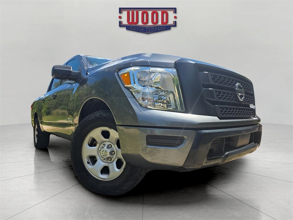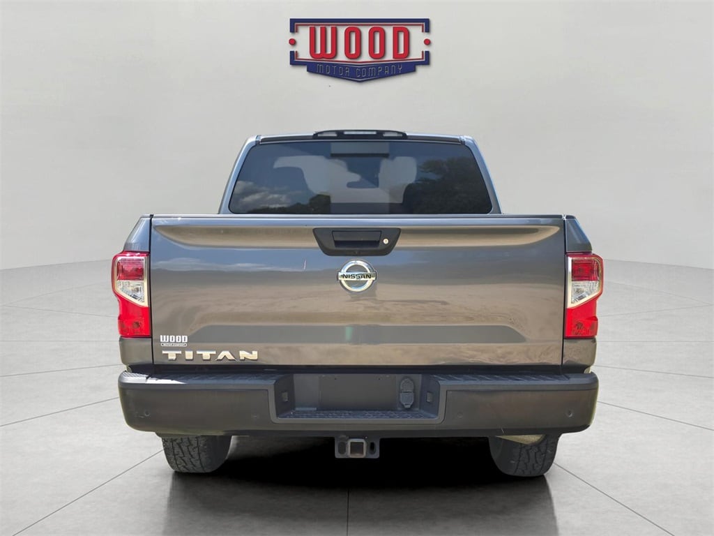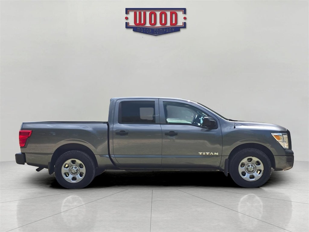 Clean CARFAX. Titan S, 4D Crew Cab, 5.6L V8 DOHC 32V LEV3-ULEV70 400hp, 9-Speed Automatic, RWD, Gun Metallic, Black w/Cloth Seat Trim, 4-Pin/7-Pin Wiring Harness Connector (Rear Bumper), Air Conditioning, Electronic Stability Control, Front Overhead Console, NissanConnect featuring Apple CarPlay and Android Auto, Power windows, Protection Package 1, Receiver Hitch, Remote keyless entry, S Utility Package, Spray-On Bedliner, Steering wheel mounted audio controls, Traction control. Gun Metallic 2020 Nissan Titan S RWD 9-Speed Automatic 5.6L V8 DOHC 32V LEV3-ULEV70 400hp