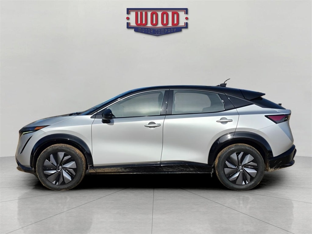 CARFAX One-Owner. Ariya ENGAGE e-4ORCE, 4D Sport Utility, Electric Motor, CVT, AWD, Brilliant Silver Metallic/Black Diamond Pearl, Charcoal w/Leatherette Seating Surfaces, AM/FM radio: SiriusXM, Auto High-beam Headlights, Automatic temperature control, Electronic Stability Control, Front Bucket Seats, Front dual zone A/C, Heads-Up Display, Heated Front Bucket Seats, Heated front seats, Heated rear seats, Heated steering wheel, Illuminated entry, Illuminated Kick Plates, Leatherette Seating Surfaces, Memory seat, Navigation system: Nissan Door to Door Connected Navigation, Outside temperature display, Power driver seat, Power windows, Radio: AM/FM Audio System, Remote keyless entry, Security system, Speed control, Steering wheel mounted audio controls, Telescoping steering wheel, Tilt steering wheel, Traction control, Trip computer. Brilliant Silver Metallic/Black Diamond Pearl 2023 Nissan Ariya ENGAGE e-4ORCE AWD CVT Electric Motor