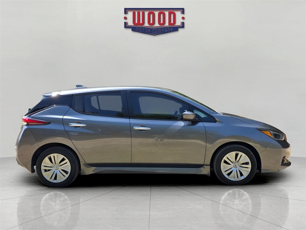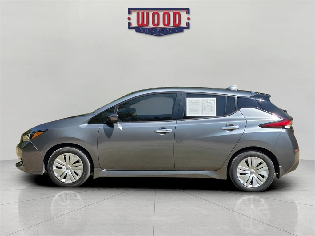 CARFAX One-Owner. Leaf S, 4D Hatchback, Electric Motor, Single Speed Reducer, Gun Metallic, Black w/Cloth Seat Trim, Automatic temperature control, Electronic Stability Control, Front Bucket Seats, Fully automatic headlights, NissanConnect featuring Apple CarPlay and Android Auto, Power windows, Radio: NissanConnect AM/FM w/SiriusXM, Rear Parking Sensors, Remote keyless entry, Siri Eyes Free, Speed control, Steering wheel mounted audio controls, Traction control. Gun Metallic 2023 Nissan Leaf S FWD Single Speed Reducer Electric Motor