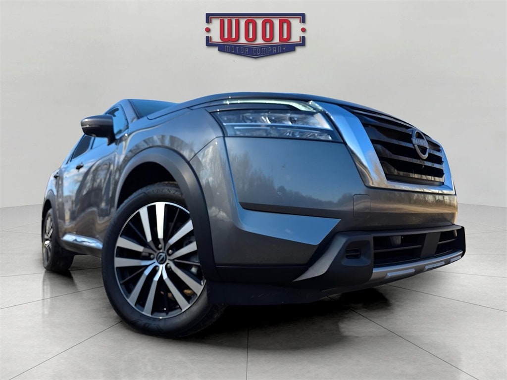 CARFAX One-Owner. Clean CARFAX. Pathfinder Platinum, 4D Sport Utility, 3.5L V6 DOHC, 9-Speed Automatic, FWD, Gun Metallic, Charcoal w/Semi-Aniline Leather-Appointed Seating Surfaces, 13 Speakers, 3rd row seats: bench, Auto High-beam Headlights, Automatic temperature control, Bose Premium Audio System, Electronic Stability Control, Exterior Parking Camera Rear, Front Bucket Seats, Front dual zone A/C, Fully automatic headlights, Heads-Up Display, Heated & Cooled Front Bucket Seats, Heated front seats, Heated rear seats, Memory seat, Navigation system: NissanConnect with Navigation and Services, NissanConnect featuring Apple CarPlay and Android Auto, Outside temperature display, Power driver seat, Power Liftgate, Power moonroof, Power passenger seat, Power windows, Rear air conditioning, Reclining 3rd row seat, Remote keyless entry, Semi-Aniline Leather-Appointed Seating Surfaces, Steering wheel memory, Traction control, Variably intermittent wipers, Ventilated front seats, Wheels: 20" x 8J Machined Alloy. Gun Metallic 2024 Nissan Pathfinder Platinum FWD 9-Speed Automatic 3.5L V6 DOHC