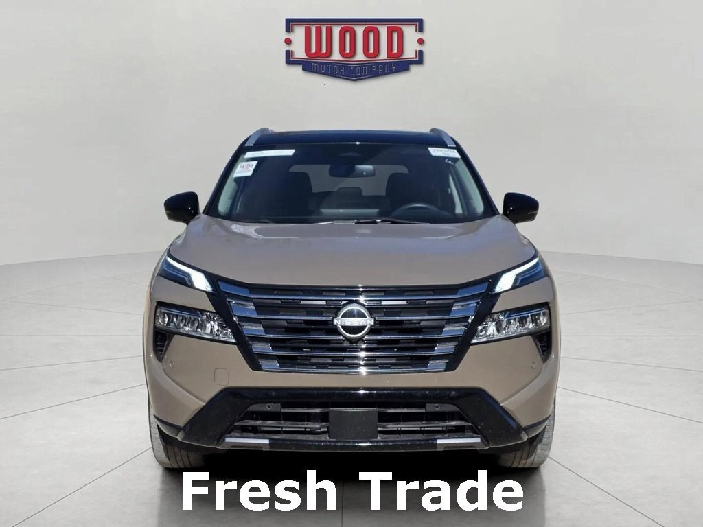 CARFAX One-Owner. Clean CARFAX. Rogue Platinum, 4D Sport Utility, 1.5L DOHC, CVT with Xtronic, AWD, Baja Storm Metallic/Super Black, Charcoal w/Quilted Semi-Aniline Leather-Appointed Seat Trim, 10 Speakers, Automatic temperature control, Bose Premium Audio System, Chrome Rear Bumper Protector, Electronic Stability Control, Front Bucket Seats, Front dual zone A/C, Fully automatic headlights, Heated Front Bucket Seats, Heated front seats, Heated steering wheel, Illuminated entry, Memory seat, Navigation system: NissanConnect with Navigation and Services, NissanConnect featuring Apple CarPlay and Android Auto, Outside temperature display, Power driver seat, Power Liftgate, Power moonroof, Power windows, Quilted Semi-Aniline Leather-Appointed Seat Trim, Radio: AM/FM NissanConnect w/Navigation, Remote keyless entry, Security system, Speed control, Steering wheel mounted audio controls, Telescoping steering wheel, Tilt steering wheel, Traction control, Variably intermittent wipers, Wheels: 19 Unique Dark Painted Aluminum Alloy. Baja Storm Metallic/Super Black 2024 Nissan Rogue Platinum AWD CVT with Xtronic 1.5L DOHCA solid name you can trust... Wood Motor. Recent Arrival! 28/34 City/Highway MPG