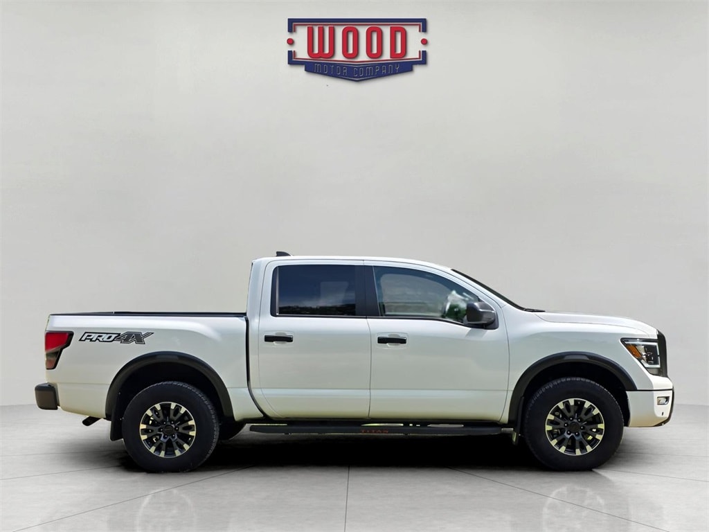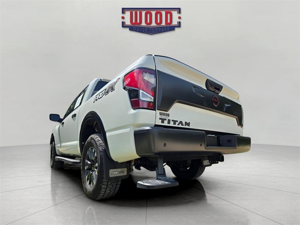 CARFAX One-Owner. Clean CARFAX. Titan PRO-4X, 4D Crew Cab, 5.6L V8 DOHC 32V LEV3-ULEV70 400hp, 4WD, Glacier White, Black w/Cloth Seat Trim w/Vinyl Bolsters or Leather Seat Trim, Apple CarPlay/Android Auto, Automatic temperature control, Electronic Stability Control, Front dual zone A/C, Fully automatic headlights, Navigation system: NissanConnect with Navigation and Services, Power driver seat, Power windows, Radio: NissanConnect w/Navigation, Rear Parking Sensors, Remote keyless entry, Security system, Speed control, Steering wheel mounted audio controls, Traction control. Glacier White 2024 Nissan Titan PRO-4X 4WD 9-Speed Automatic 5.6L V8 DOHC 32V LEV3-ULEV70 400hp