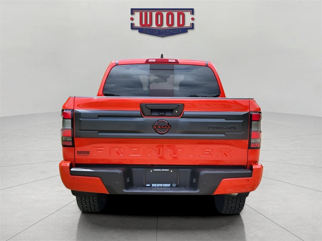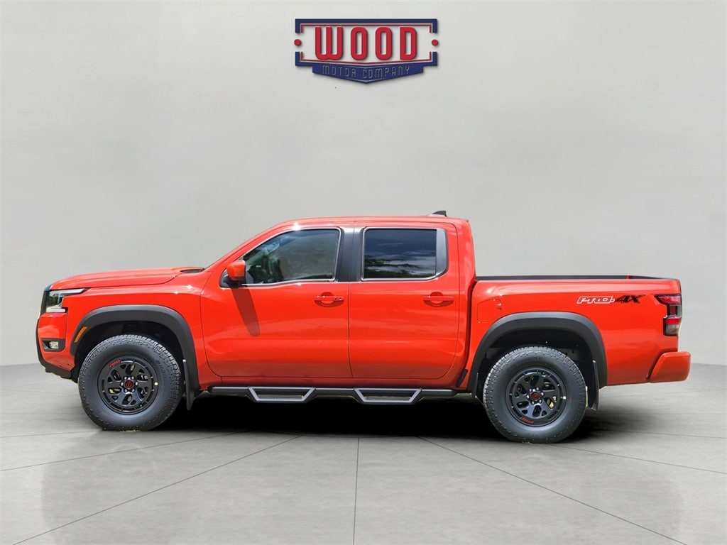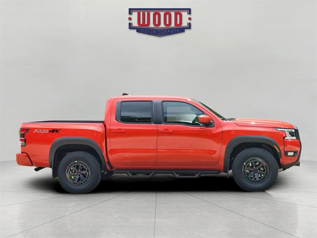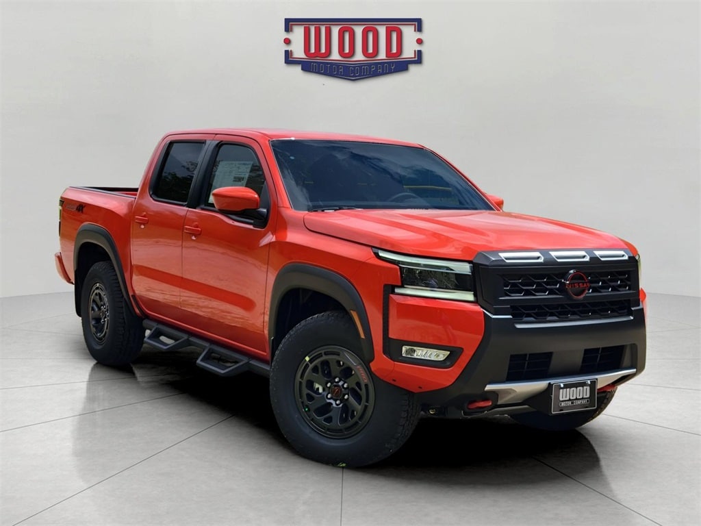 Clean CARFAX. Frontier PRO-4X, 4D Crew Cab, 3.8L DI DOHC 24V V6, 9-Speed Automatic with Overdrive, 4WD, Afterburn Orange, Charcoal w/Lava Red Stitch w/PRO Embroidered Premium Cloth Seat Trim, 17" Painted Alloy Wheels, Auto High-beam Headlights, Automatic temperature control, Blind Spot Warning, Electronic Stability Control, Front Bucket Seats, Front dual zone A/C, Fully automatic headlights, Panic alarm, Power driver seat, Power windows, PRO Embroidered Premium Cloth Seat Trim, Radio: SXM/AM/FM/AUX/USB Audio System, Remote Engine Starter, Remote Engine Starter Accessory, Remote keyless entry, Security system, Steering wheel mounted audio controls, Telescoping steering wheel, Tilt steering wheel, Traction control, Wireless Apple CarPlay/Wireless Android Auto. Afterburn Orange 2025 Nissan Frontier PRO-4X 4WD 9-Speed Automatic with Overdrive 3.8L DI DOHC 24V V6