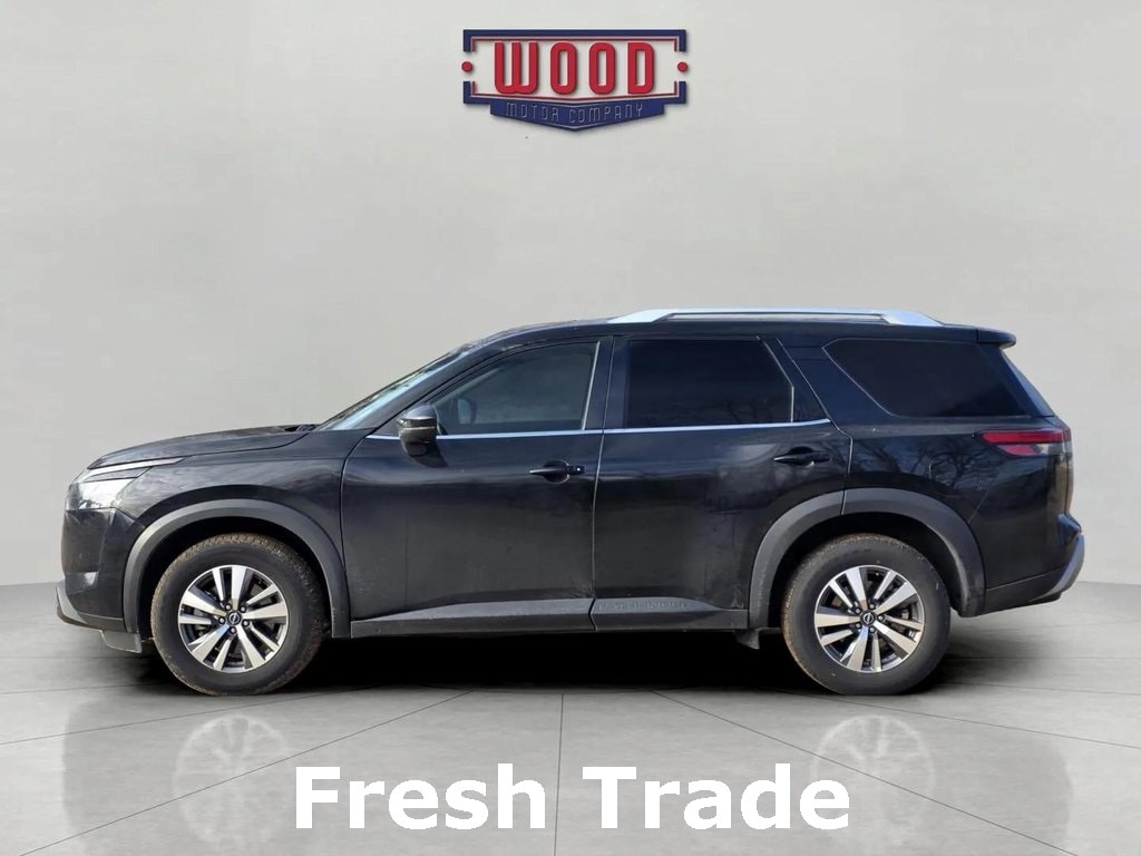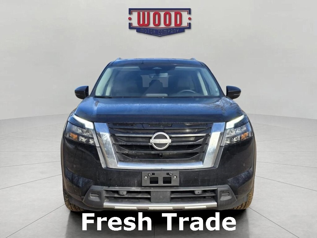 CARFAX One-Owner. Pathfinder SL, 4D Sport Utility, 3.5L V6 DOHC, 9-Speed Automatic, 4WD, Super Black, Charcoal w/Leather-Appointed Seating Surfaces, 3rd row seats: bench, Auto High-beam Headlights, Automatic temperature control, Electronic Stability Control, Exterior Parking Camera Rear, Front Bucket Seats, Front dual zone A/C, Fully automatic headlights, Heated Front Bucket Seats, Heated front seats, Heated steering wheel, Illuminated entry, Leather steering wheel, Leather-Appointed Seating Surfaces, Navigation system: NissanConnect with Navigation and Services, NissanConnect featuring Apple CarPlay and Android Auto, NissanConnect with Navigation and Services, Power driver seat, Power Liftgate, Power passenger seat, Power windows, Radio: AM/FM Audio System, Rear air conditioning, Reclining 3rd row seat, Remote keyless entry, Security system, Speed control, Split folding rear seat, Steering wheel mounted audio controls, Telescoping steering wheel, Tilt steering wheel, Traction control. Super Black 2025 Nissan Pathfinder SL 4WD 9-Speed Automatic 3.5L V6 DOHC