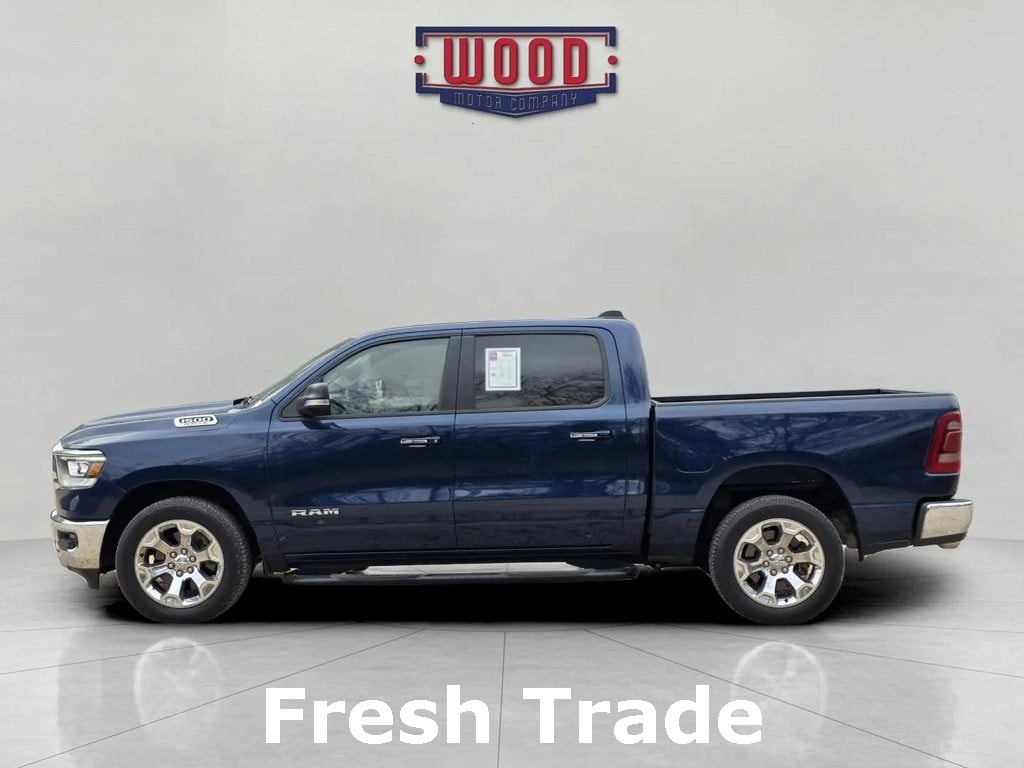 CARFAX One-Owner. Clean CARFAX. 1500 Big Horn/Lone Star, 4D Crew Cab, HEMI 5.7L V8 Multi Displacement VVT, RWD, Patriot Blue Pearlcoat, Light Mountain Brown/Black w/Cloth Deluxe Cloth Bucket Seats, 1-Year SiriusXM Radio Service, 2 USB Full Function/Charge Only Media Hub, 8.4" Touchscreen Display, Air Conditioning ATC w/Dual Zone Control, Anti-Spin Differential Rear Axle, Apple CarPlay, Auto-Dimming Exterior Driver Mirror, Auto-Dimming Rear-View Mirror, Big Horn IP Badge, Big Horn Non-BSG Level 2 Group w/Media Hub (DISC), Class IV Receiver Hitch, Cluster 7.0" TFT Color Display, Dampened Tailgate, Electronic Stability Control, Exterior Mirrors Courtesy Lamps, Exterior Mirrors w/Supplemental Signals, Foam Bottle Insert (Door Trim Panel), For More Info, Call 800-643-2112, Front LED Fog Lamps, Fully automatic headlights, Glove Box Lamp, Google Android Auto, GPS Navigation, Heated Front Seats, Heated Steering Wheel, Integrated Center Stack Radio, LED Reflector Headlamps, LED Taillamps, ParkSense Front/Rear Park Assist w/Stop, ParkView Rear Back-Up Camera, Power 4-Way Driver Lumbar Adjust, Power 8-Way Driver Seat, Power Adjustable Pedals, Power Heated Fold Away Mirrors, Power windows, Power-Folding Mirrors, Premium Lighting Group, Quick Order Package 25Z Big Horn/Lone Star, Radio: Uconnect 4 w/8.4" Display, Rear Dome w/On/Off Switch Lamp, Rear Power Sliding Window, Rear Window Defroster, Remote keyless entry, Remote Start System, Security Alarm, Single Disc Remote CD Player, SiriusXM Satellite Radio, Steering Wheel Mounted Audio Controls, Sun Visors w/Illuminated Vanity Mirrors, Universal Garage Door Opener. Patriot Blue Pearlcoat 2019 Ram 1500 Big Horn/Lone Star RWD 8-Speed Automatic HEMI 5.7L V8 Multi Displacement VVT